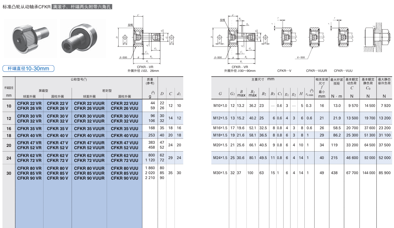 CFKR72 系列:CFKR72、CFKR72R、CFKR72UU、CFKR72UUR等不同型号标准凸轮从动轴承。