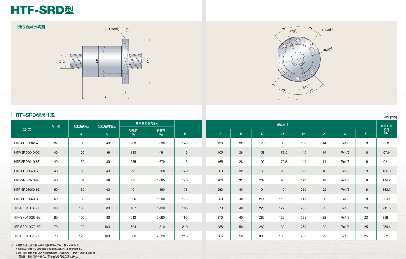 NSK中国总代理HTF - SRD 系列:HTF - SRD5040 - 6E、HTF - SRD5040 - 8E、HTF - SRD6332 - 4E、HTF - SRD6340 - 6E、HTF - SRD6340 - 8E、HTF - SRD8050 - 6E、HTF - SRD8050 - 8E、HTF - SRD10060 - 6E、HTF - SRD10060 - 8E、HTF - SRD12070 - 6E、HTF - SRD12070 - 8E 等等不同型号高负载驱动用滚珠丝杠NSK厂家促销。