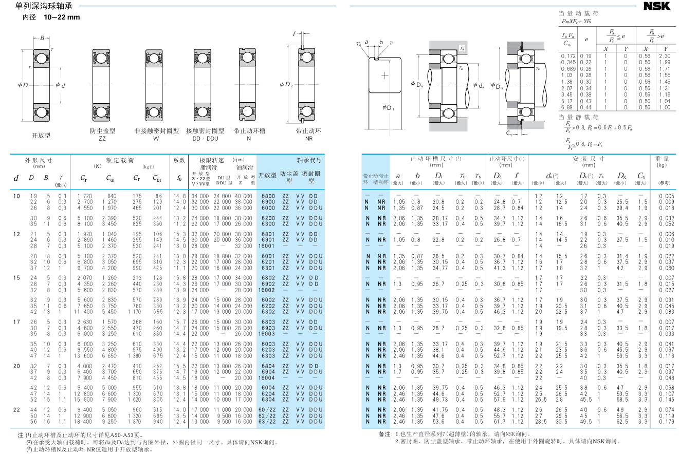 62 系列:6200-DDU/VV、6201-DDU/VV、6202-DDU/VV 等不同型号深沟球轴承NSK厂家促销。