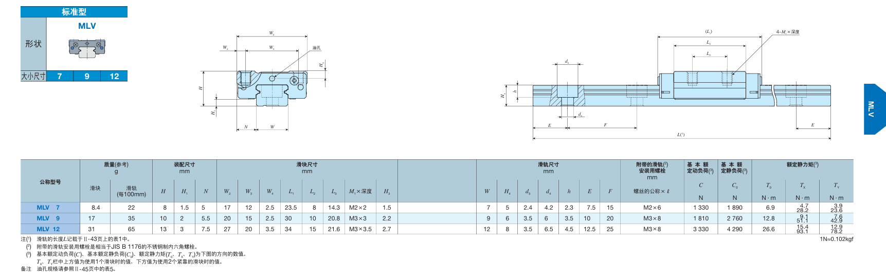 IKO代理商特价型号:IKO C - Lube 自润滑直线导轨 LV 系列包含: MLV7、MLV9、MLV121等不同型号自润滑直线导轨IKO厂家促销。