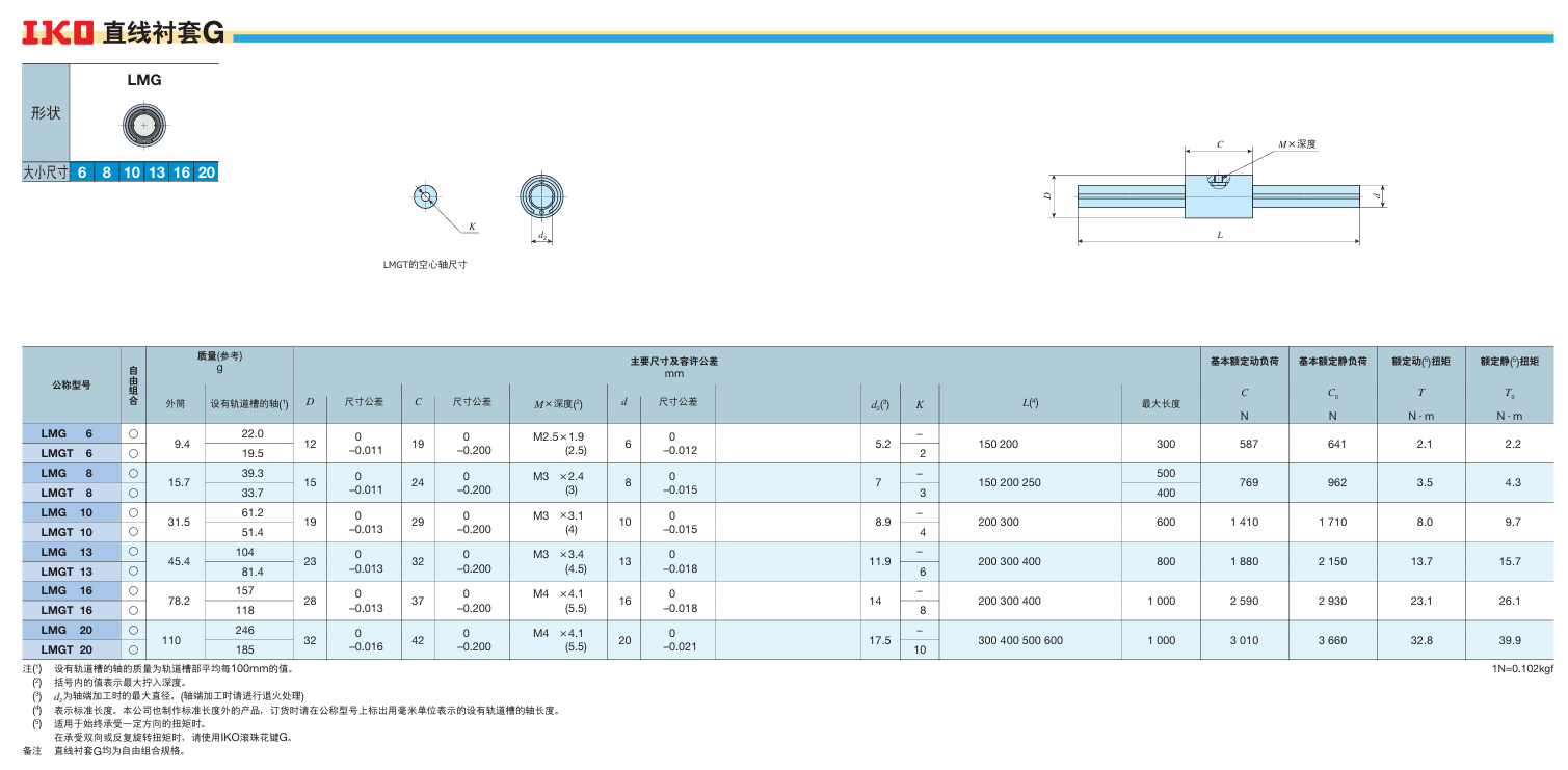 IKO代理商特价型号:IKO LMG 直线衬套系列包含: LMG6、LMG8、LMG10、LMG13、LMG16、LMG202等不同型号直线衬套IKO厂家促销。