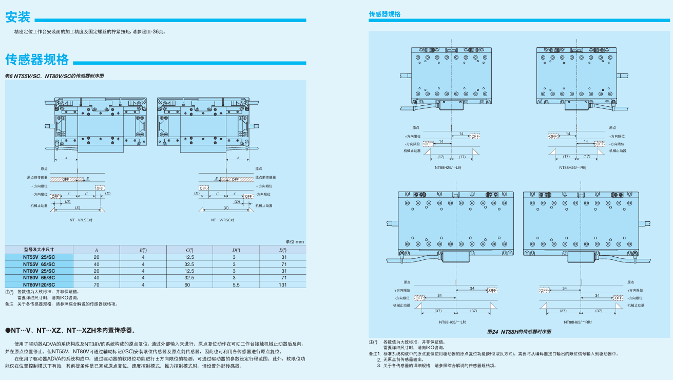 通过装入专用的弹簧式平衡机构,可防止可动工作台在电源切断等时掉落充分发挥NT…V的低断面、紧凑特性,可构建多连型拾取&定位机构等。