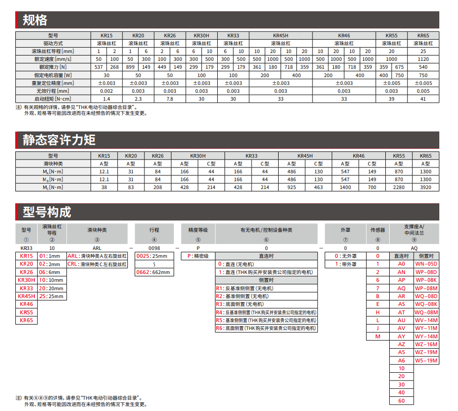 KR-RL15、KR-RL20、KR-RL26、KR-RL33、KR-RL45、KR-RL46、KR-RL55、KR-RL65等不同模块THK厂家促销。