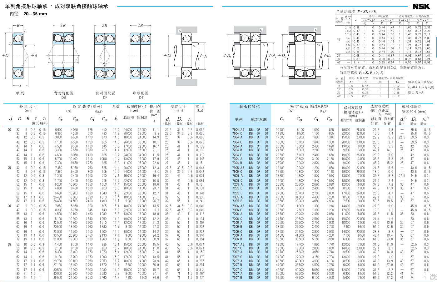 7000C 系列8:如 7000C、7001C、7002C、7000DB、7000DF、7000DT 等不同型号成对双联角接触球轴承NSK厂家促销。