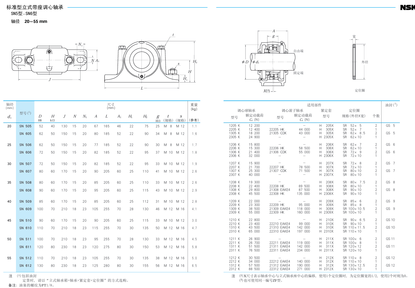 22 系列:2214、2214K、2214ETN9、2214EKTN9、2214M、2214KM 等不同型号标准型立式带座调心轴承NSK厂家促销。