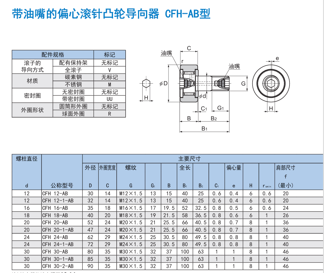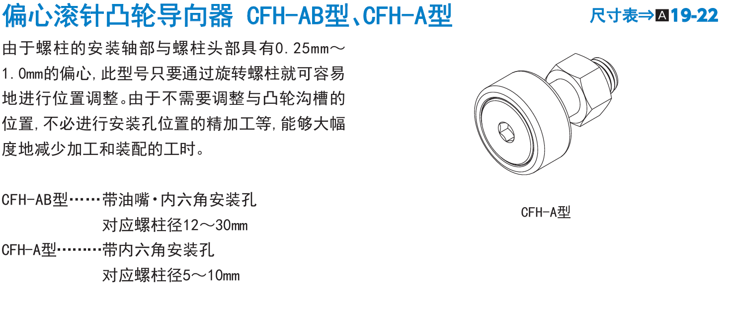 CFH20 系列:CFH20-AB、CFH20-1-AB、CFH20-1UUR-AB等不同型号滚针凸轮导向器轴承THK厂家促销。